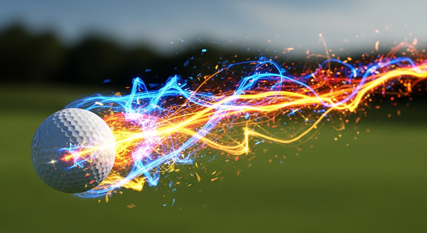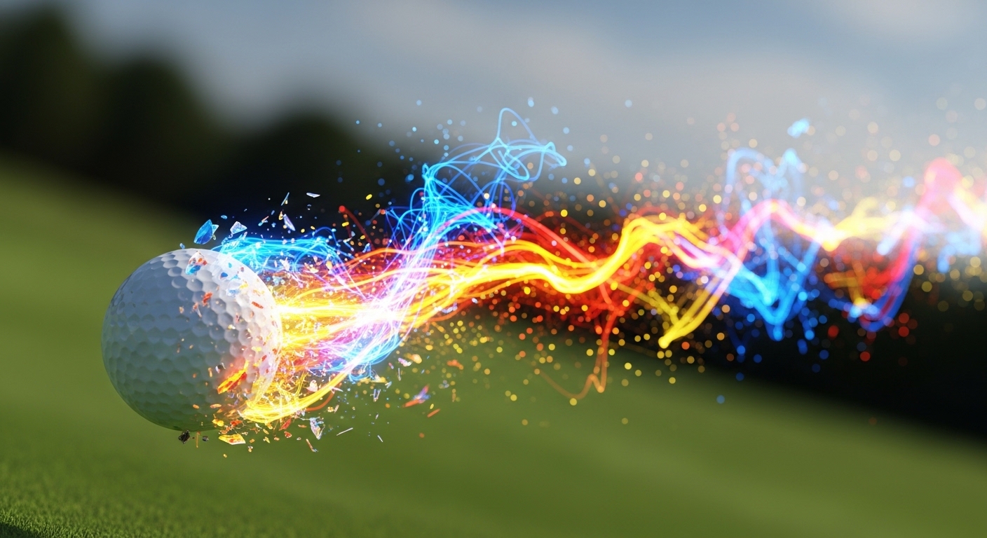 ゴルフボールは、インパクトの瞬間にコアがしっかり潰れることで、エネルギーが推進力に変換されます。